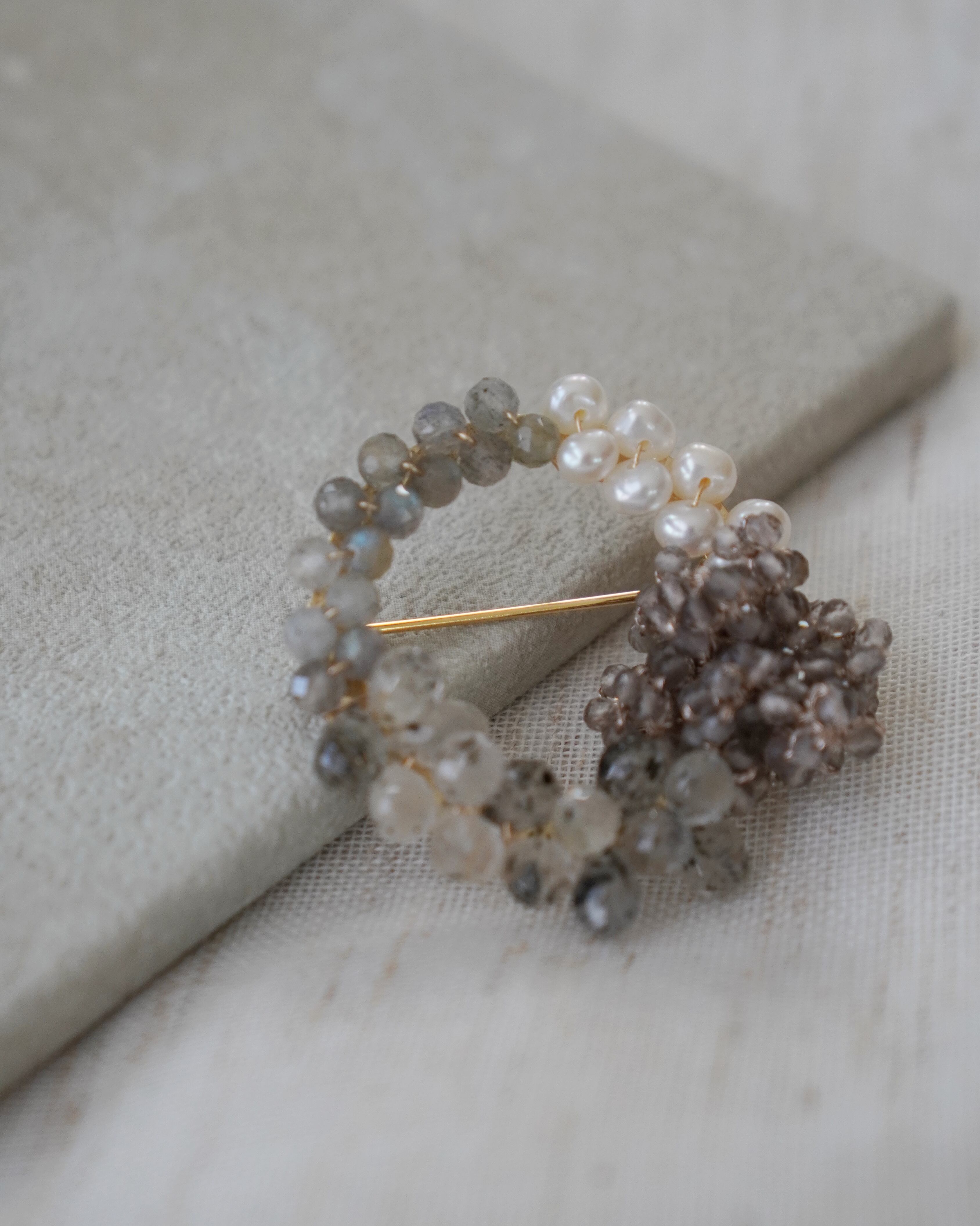 また、淡水パールとラブラドライトが加えられたことで、色彩のコントラストが一層引き立ち、女性らしい柔らかい印象を与えます。