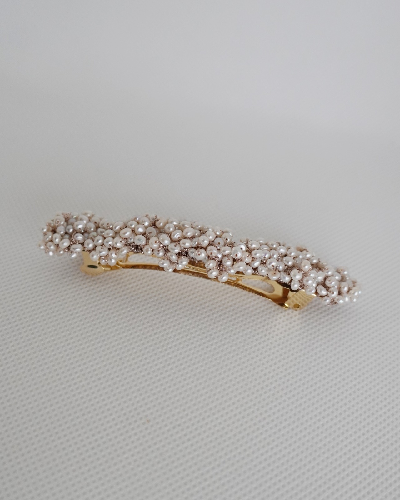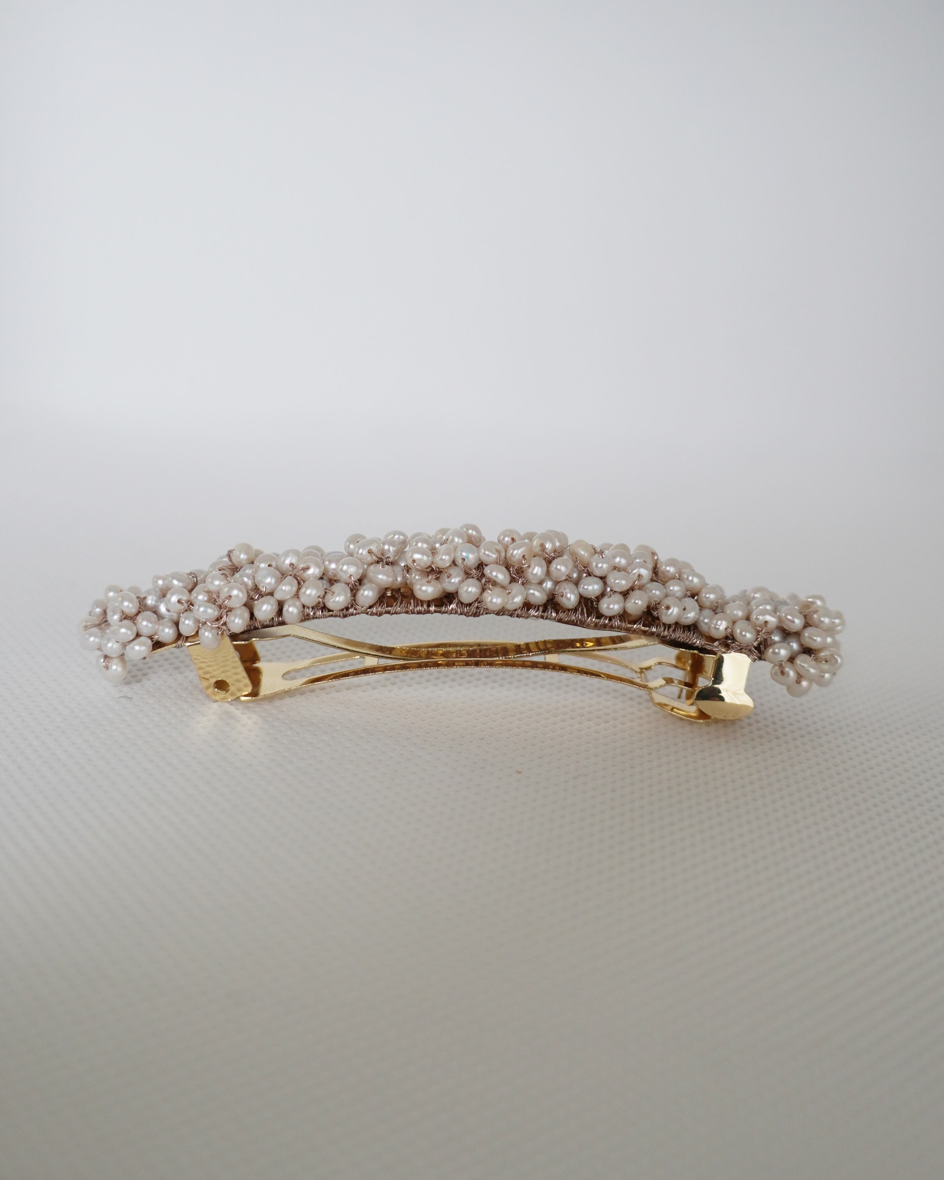 日常に優雅な雰囲気を添える淡水パールのバレッタです。