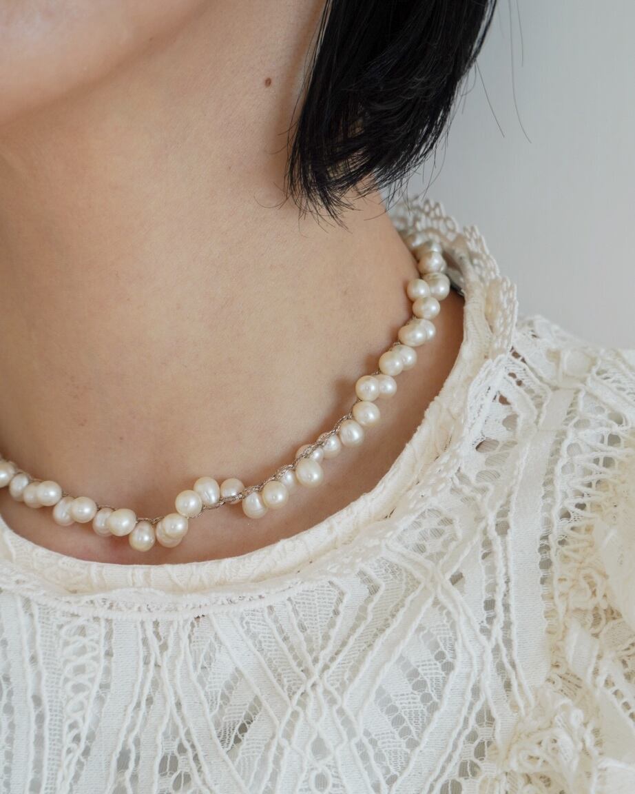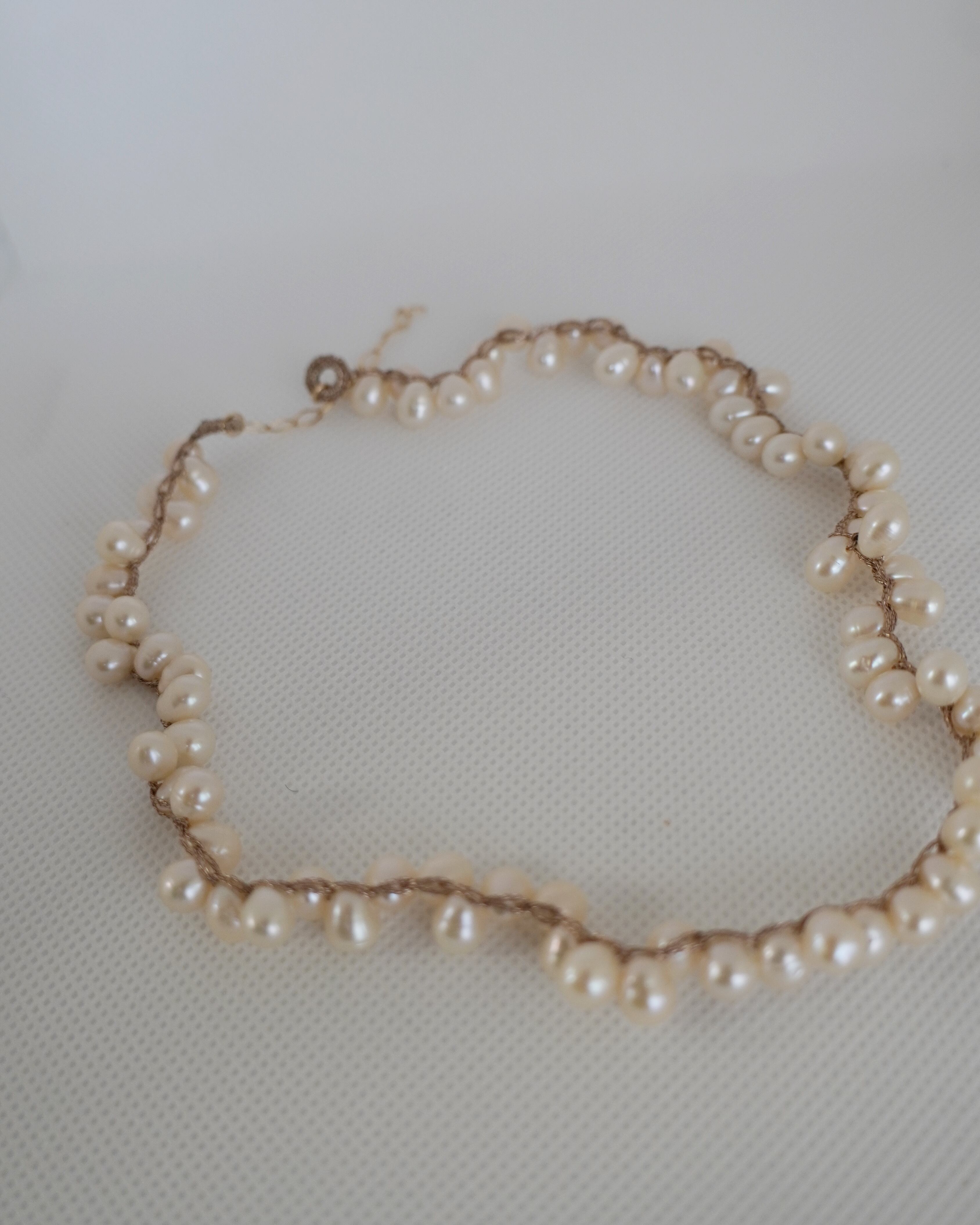 天然石を通さず、1粒ずつ編んで仕立てています。