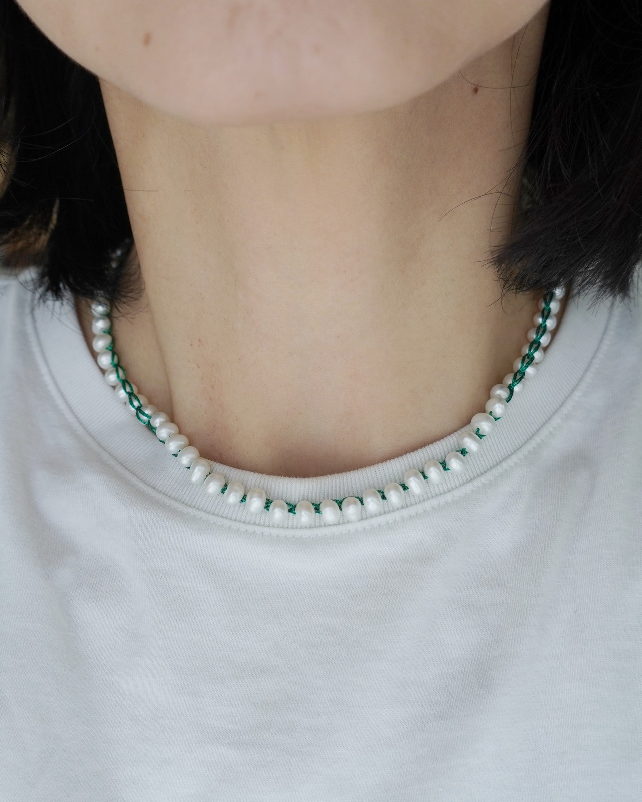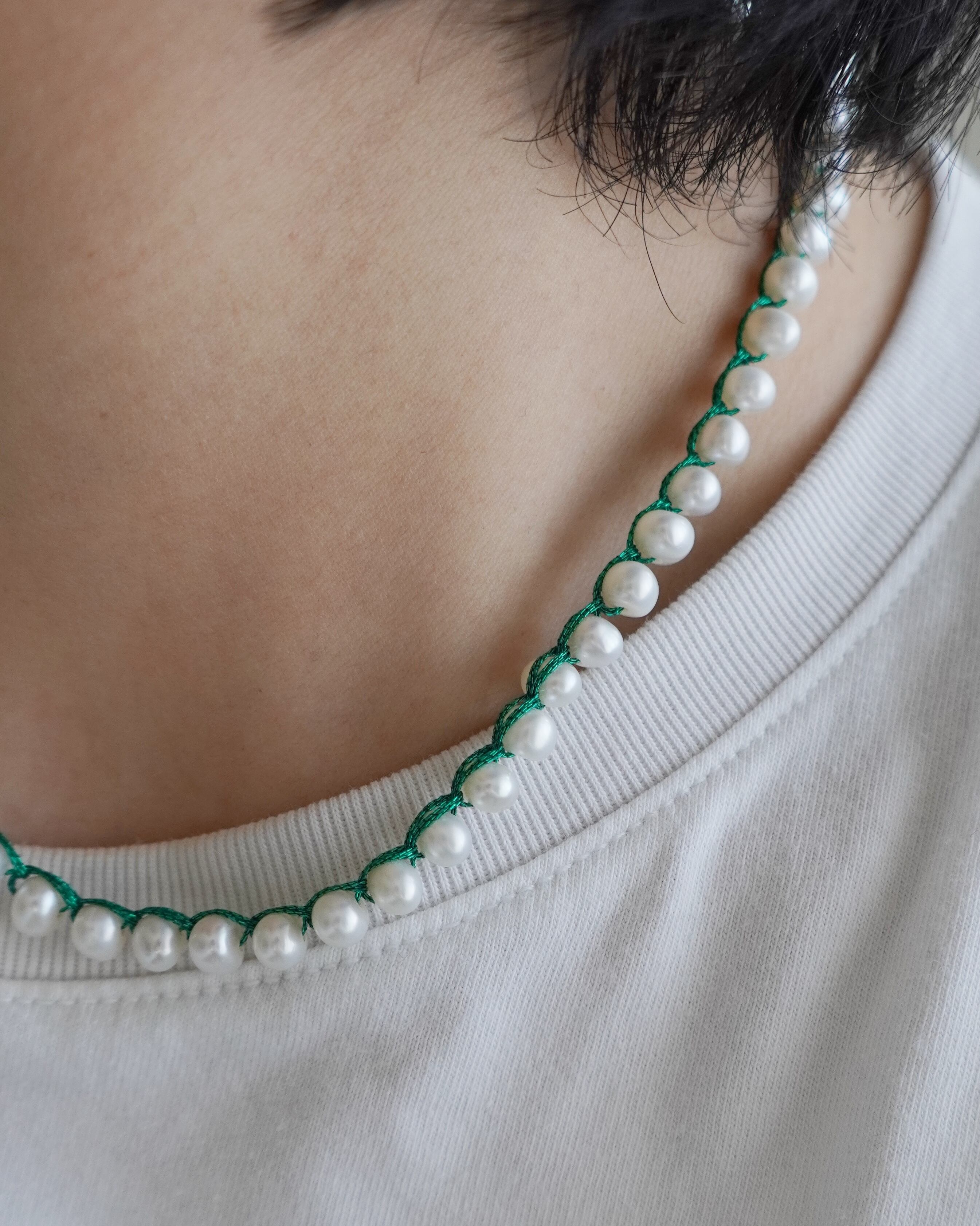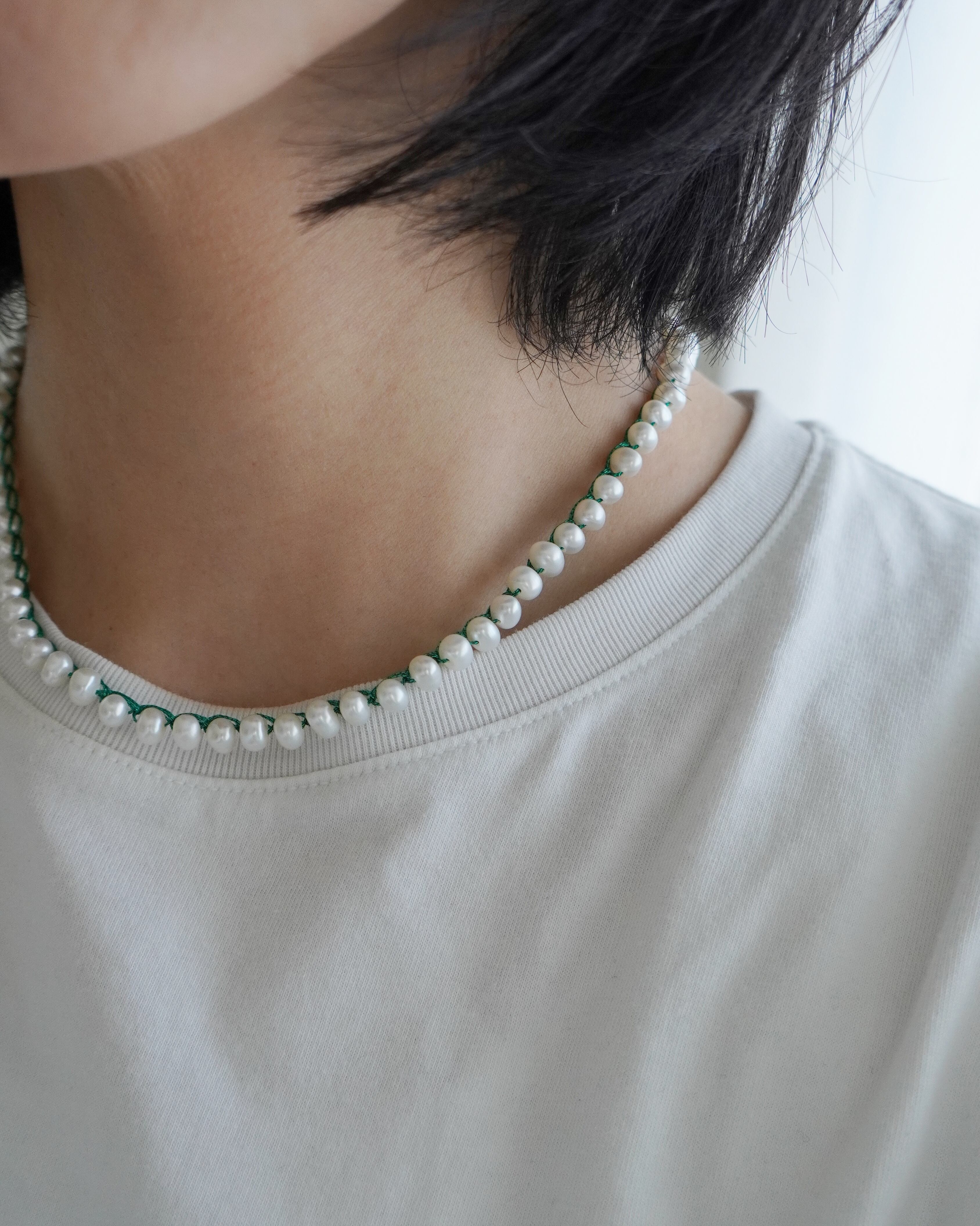 天然石を通さず、1粒ずつ編んで仕立てています。