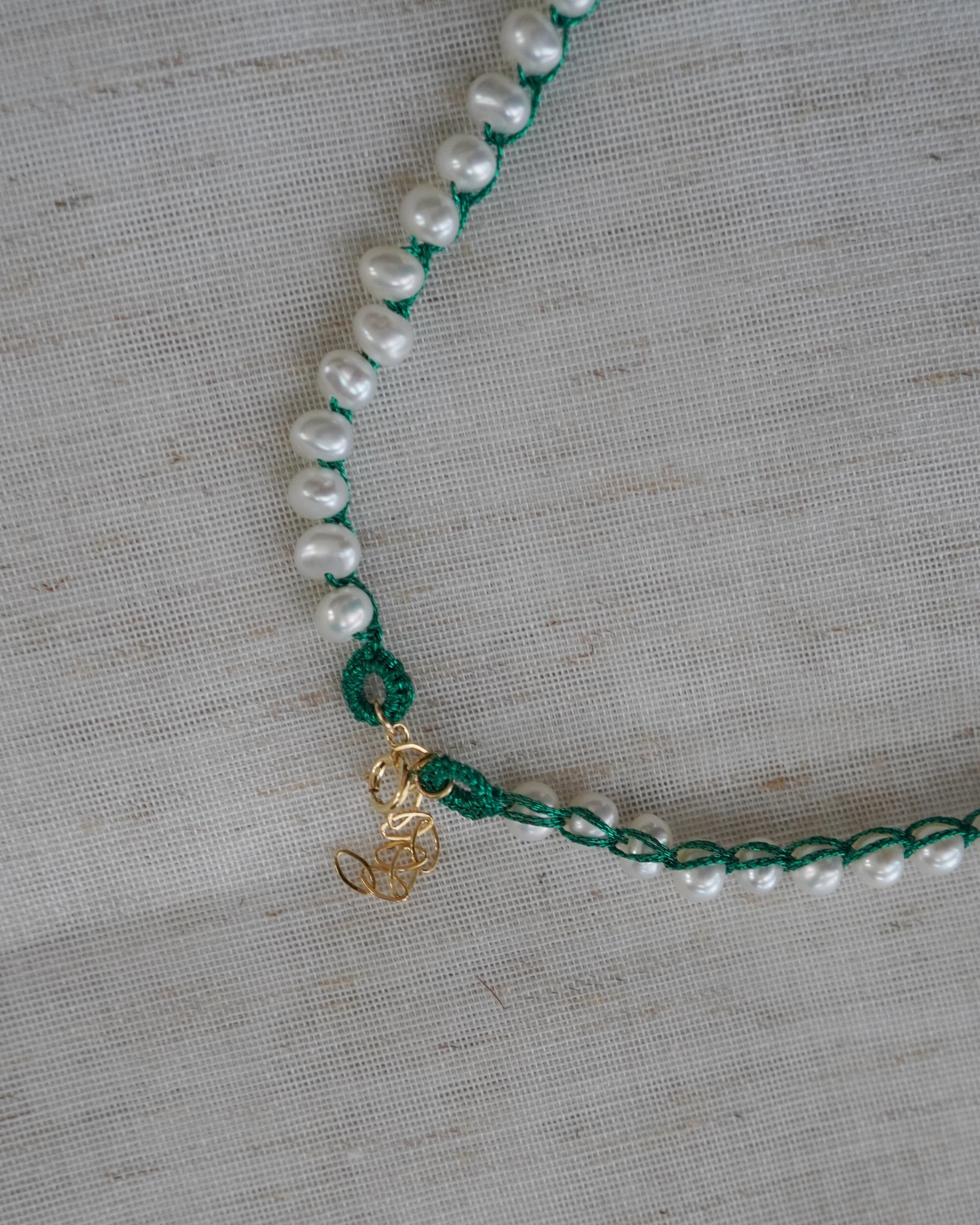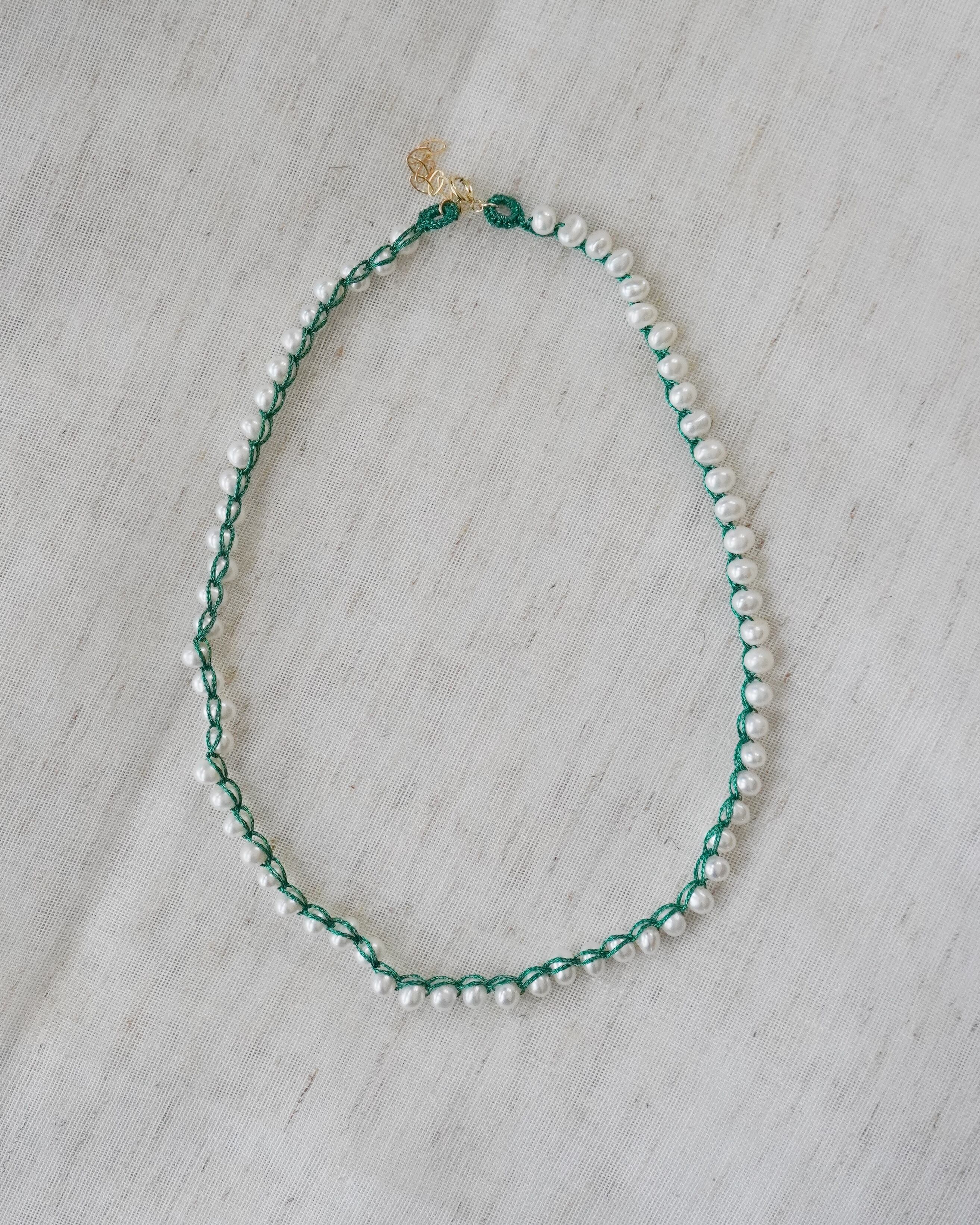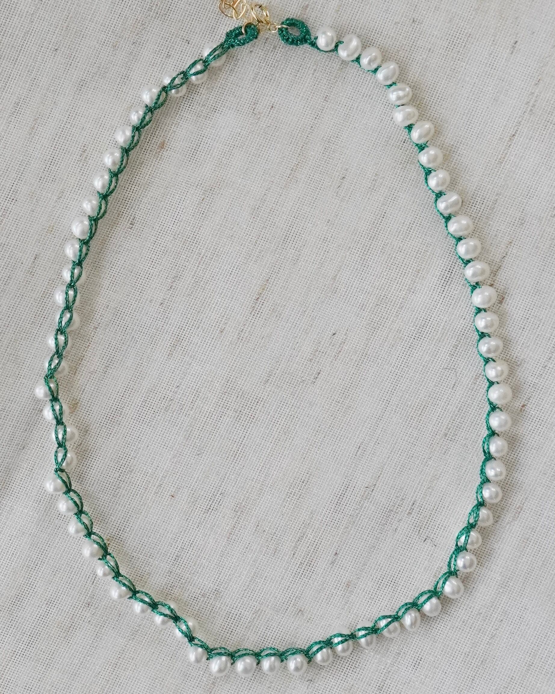 天然石を通さず、1粒ずつ編んで仕立てています。
