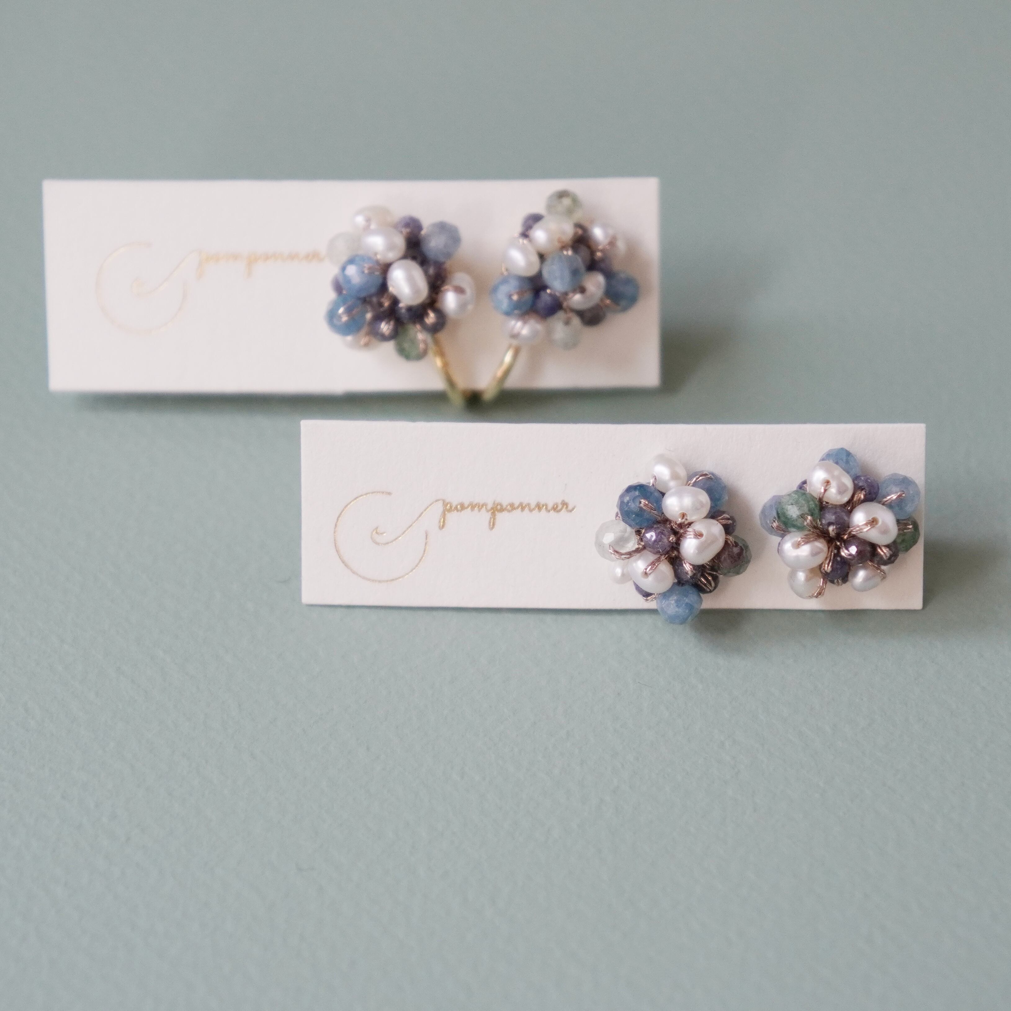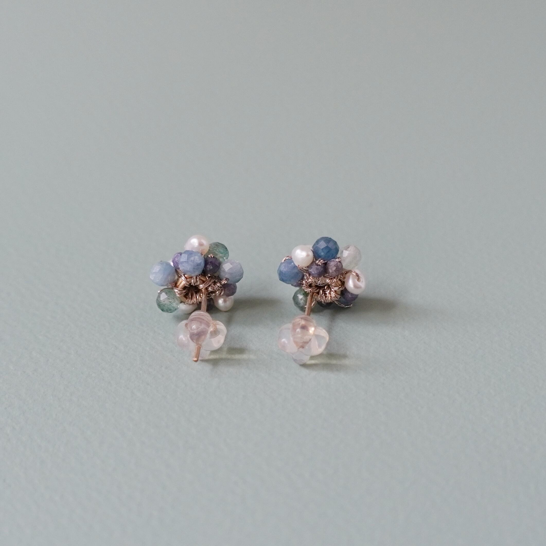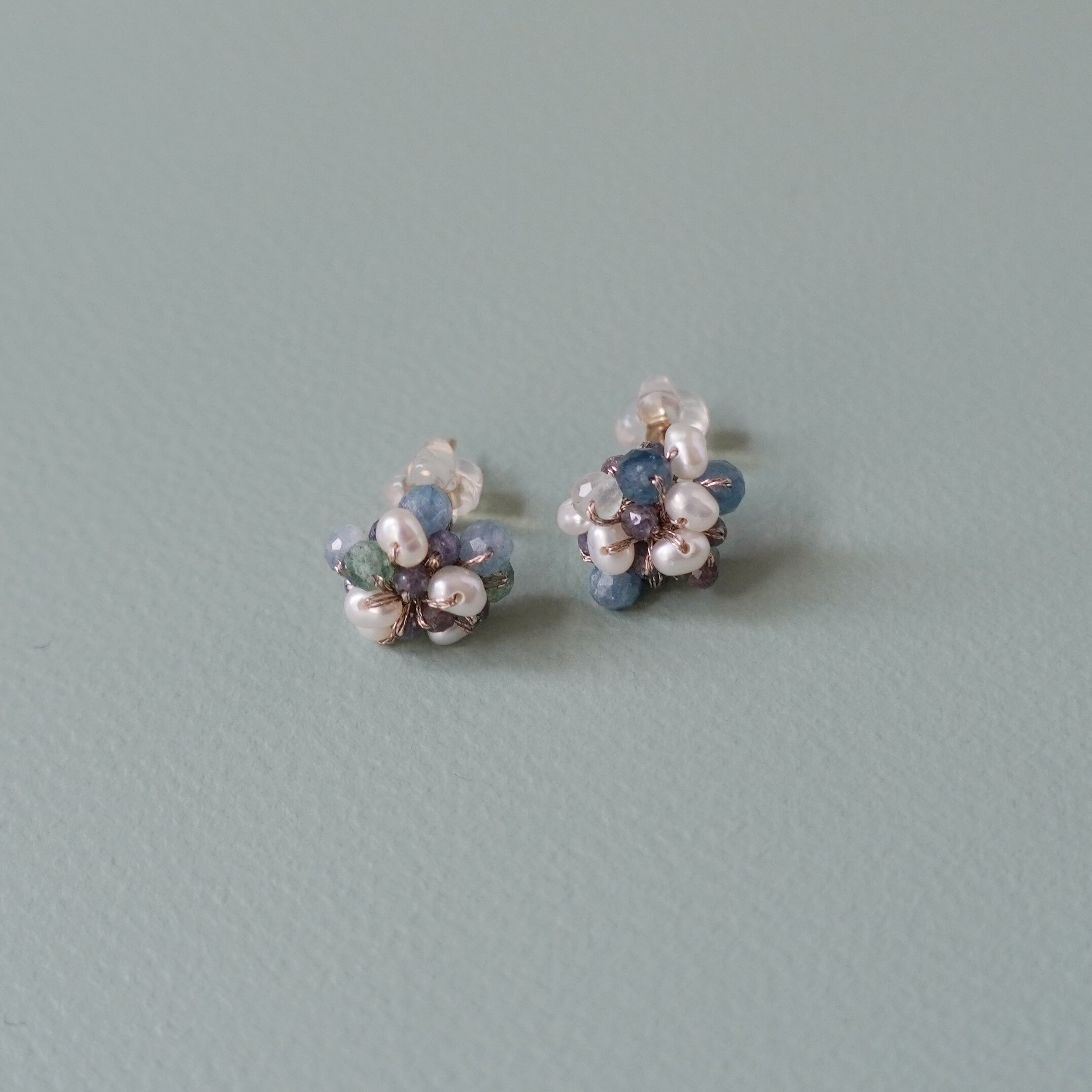 カイヤナイトと淡水パールが可愛いつぶつぶピアスが登場しました。透明感のあるカイヤナイトと極小淡水パールが、編み上げられた天然石ビーズと絶妙に組み合わさり、独特な存在感を放ちます。深いブルーのカイヤナイトと清楚な白の淡水パールが、シンプルながらも洗練された装いに華やかさをプラス。