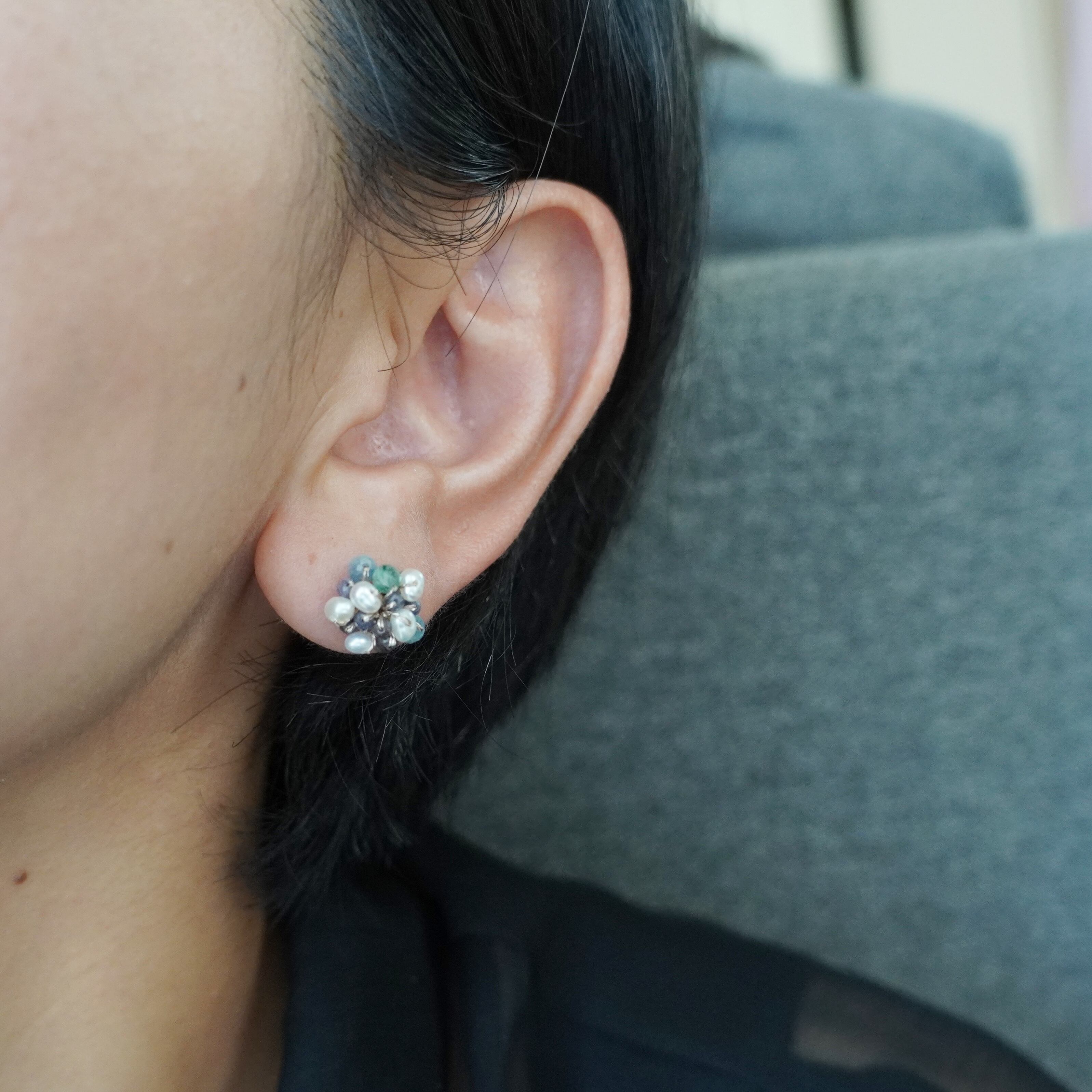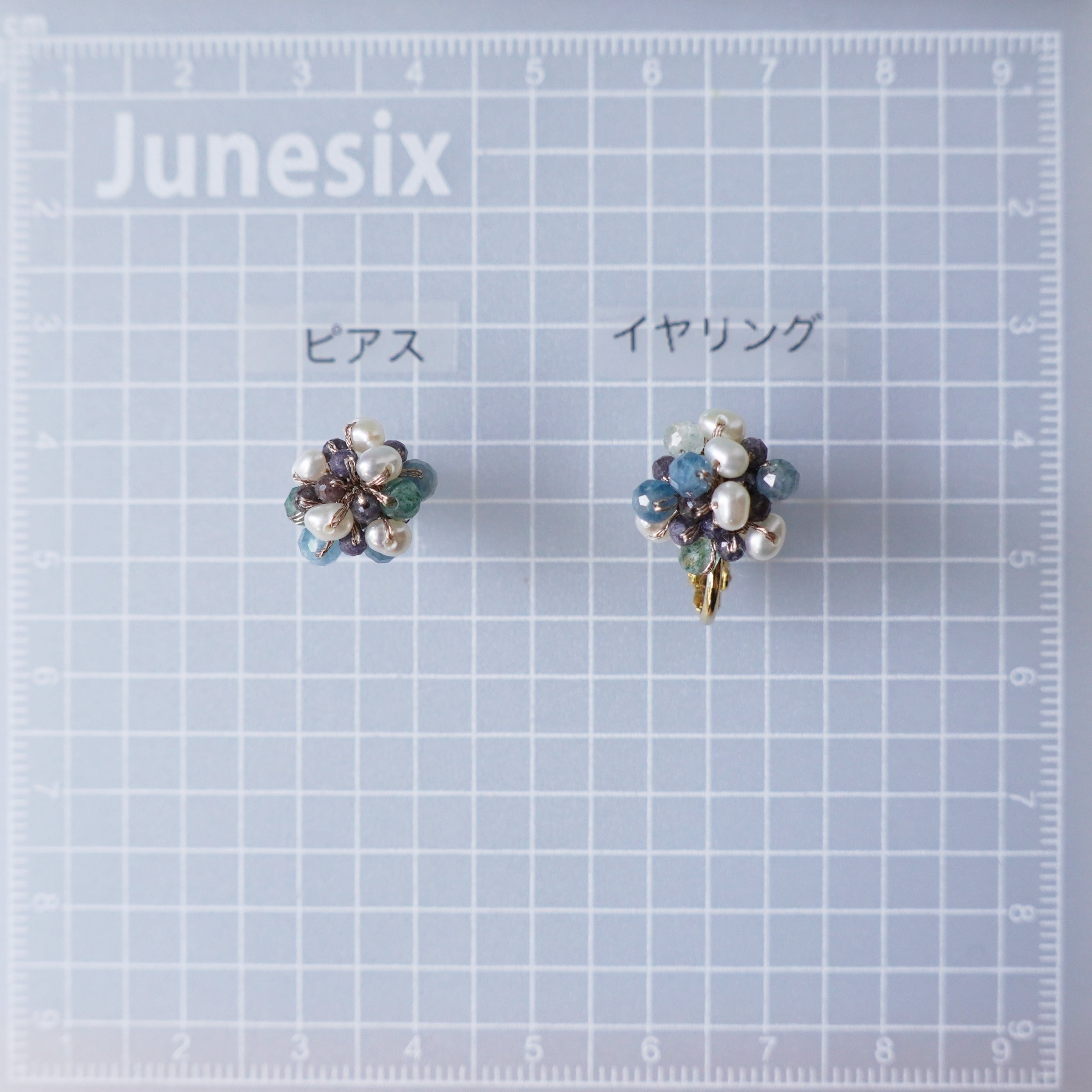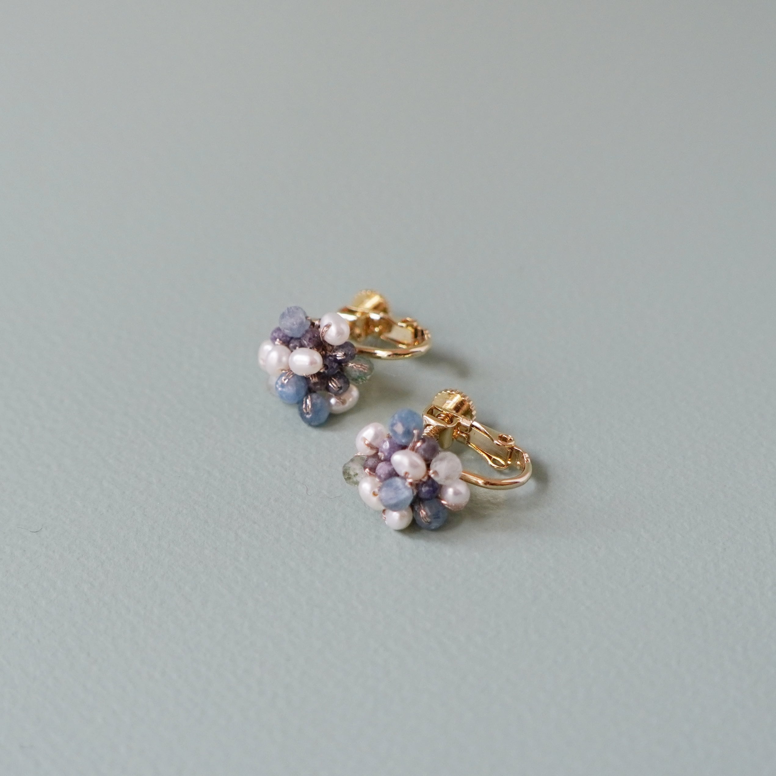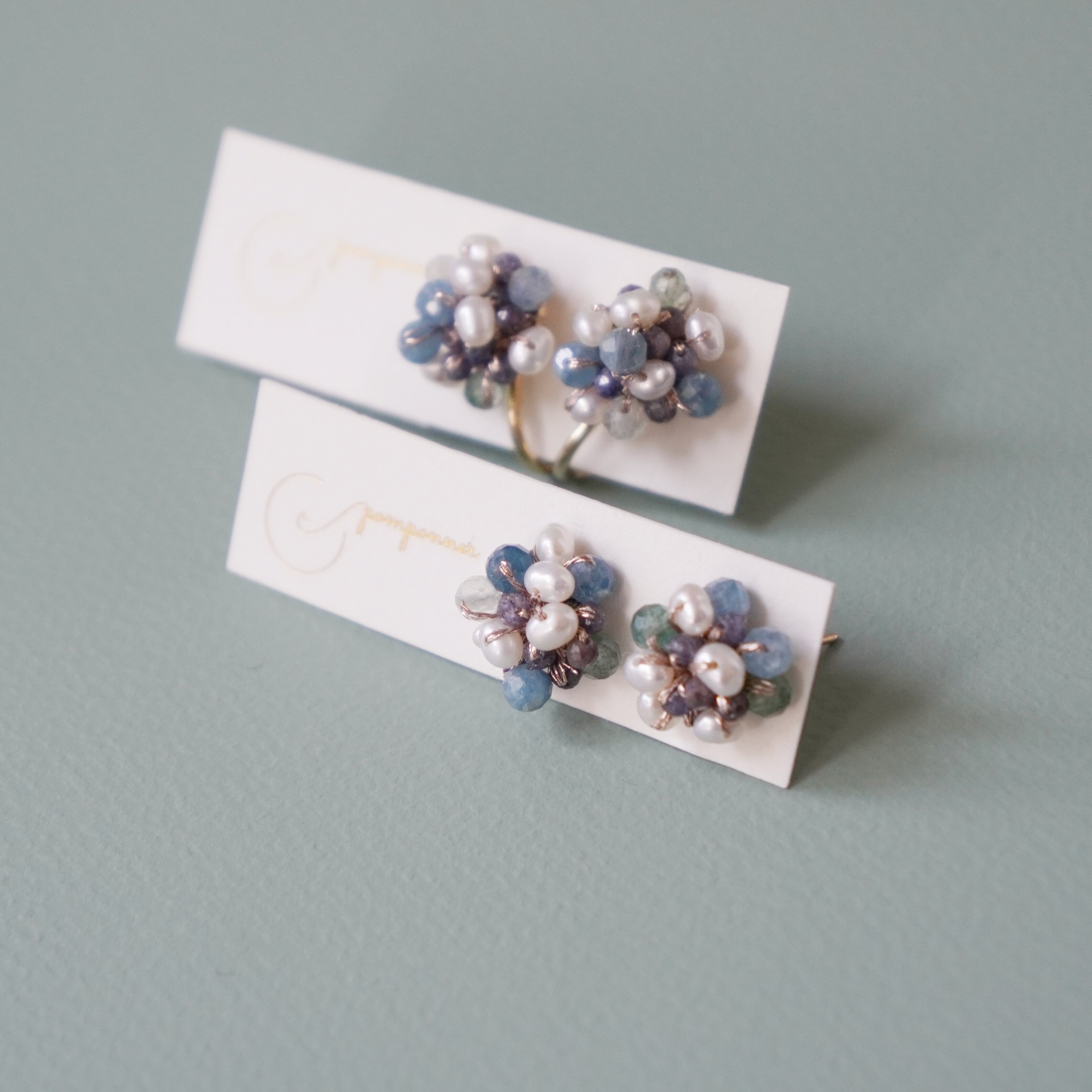 カイヤナイトと淡水パールが可愛いつぶつぶピアスが登場しました。透明感のあるカイヤナイトと極小淡水パールが、編み上げられた天然石ビーズと絶妙に組み合わさり、独特な存在感を放ちます。深いブルーのカイヤナイトと清楚な白の淡水パールが、シンプルながらも洗練された装いに華やかさをプラス。