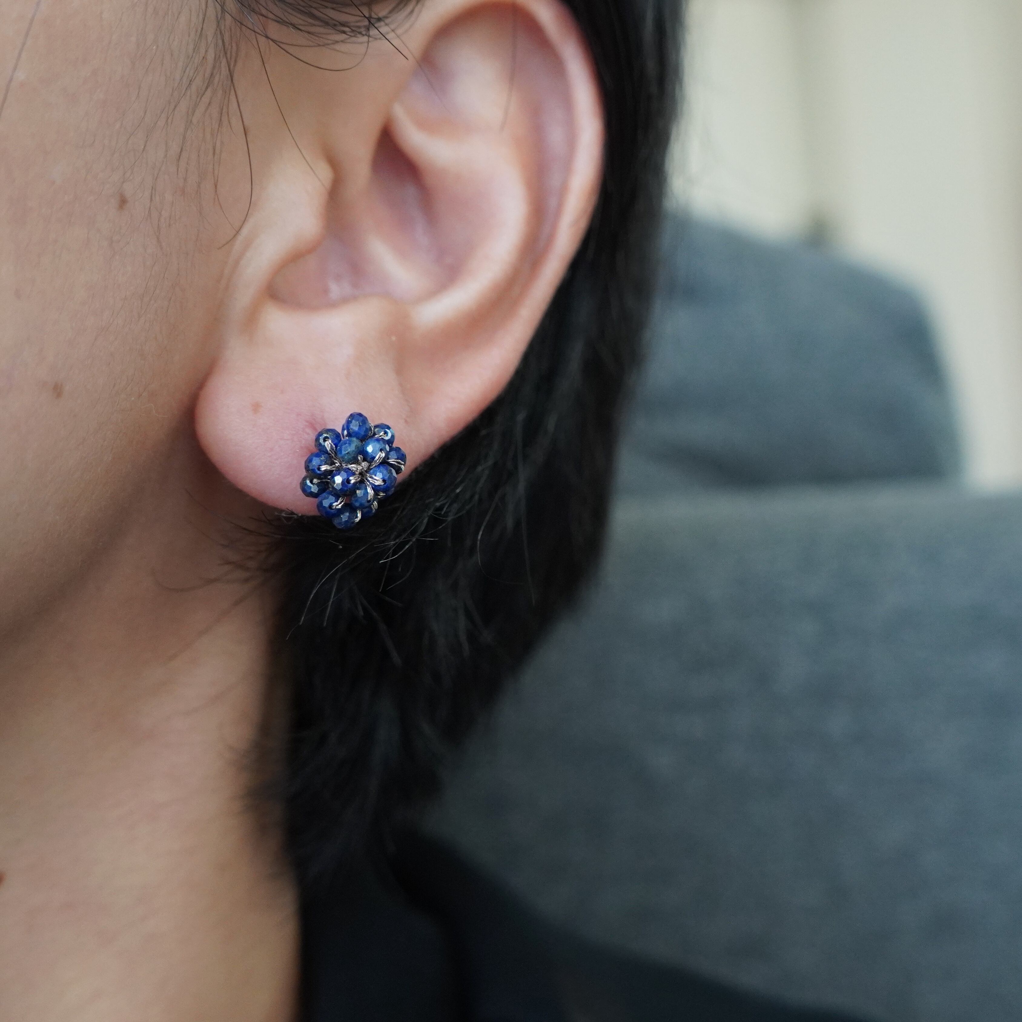 ラピスラズリの美しい深いブルーが際立つ、つぶつぶとした可愛らしいピアスです。高品質なラピスラズリの天然石ビーズを繊細に編み上げたデザインは、どんなファッションにもマッチするおしゃれなアイテム。軽やかでつけ心地も抜群です。