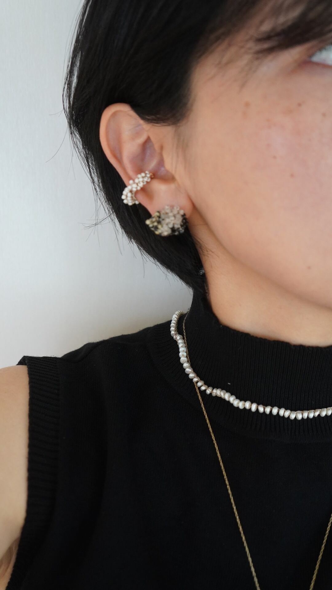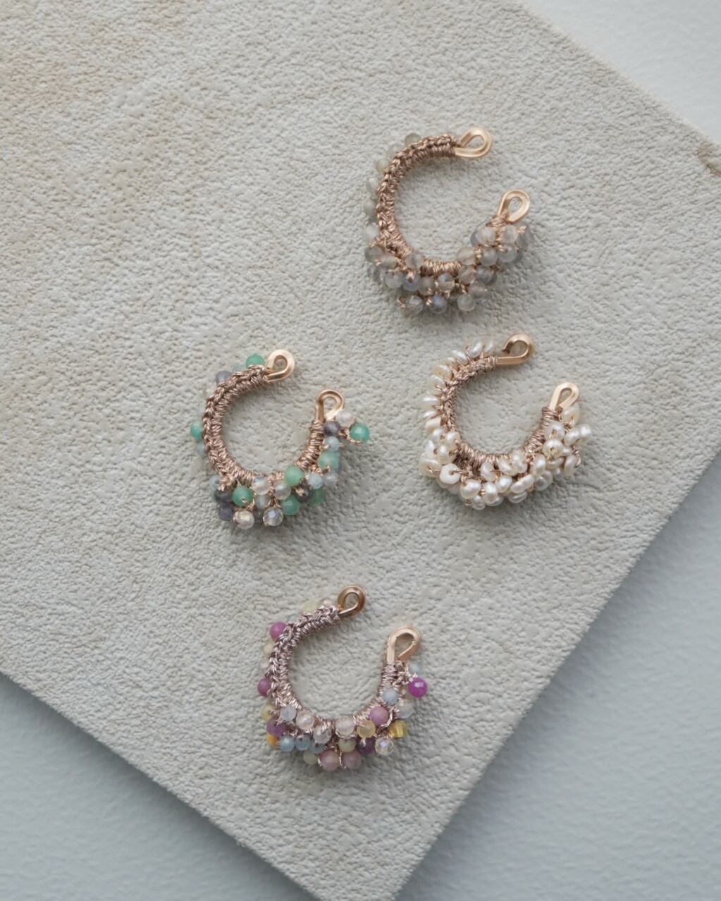 一粒一粒手作りで丁寧に作られたイヤーカフは、どんなスタイルにもマッチするのが魅力。さり気なく耳元を飾るだけで、コーディネートがぐっと華やかになります。